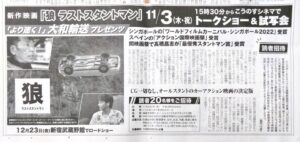 「狼 ラストスタントマン」新聞コラムにとりあげられました!