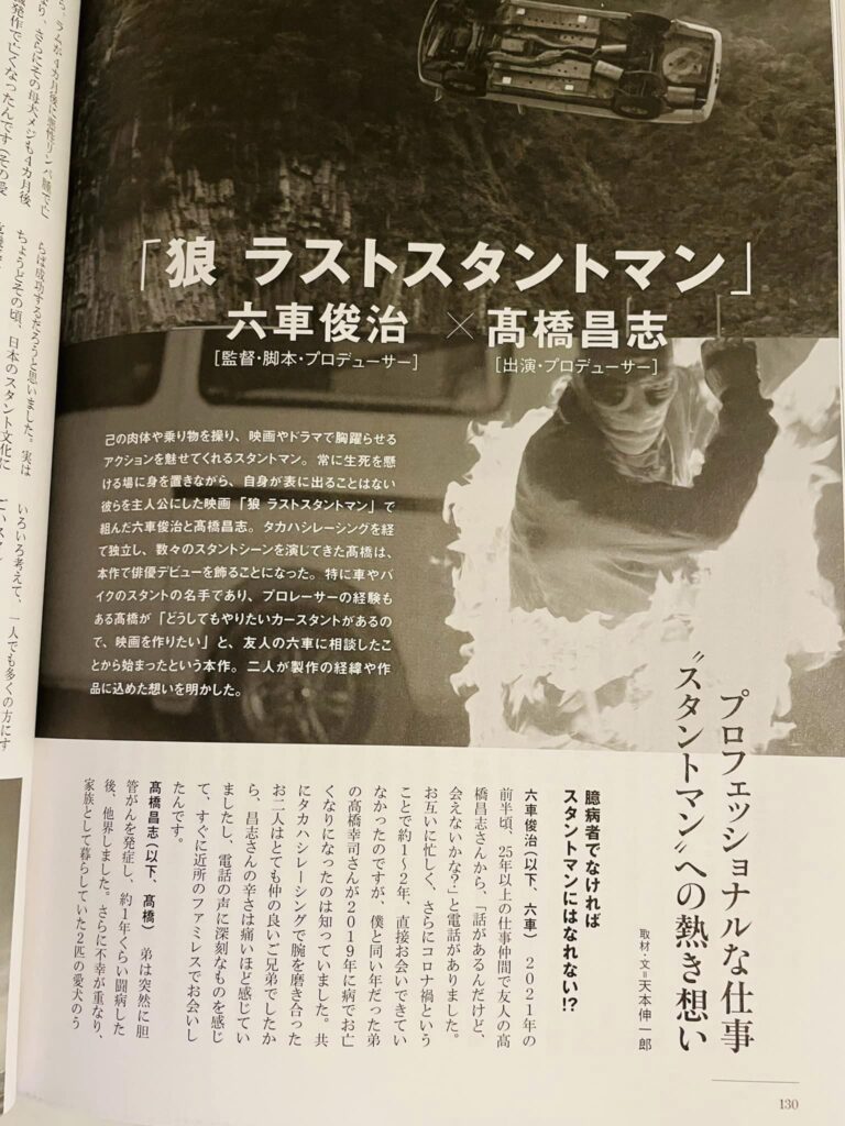映画「狼 ラストスタントマン」キネマ旬報に特集掲載! 2022年12月7日 最終更新日時 : 2022年12月7日 rokkasenfilms 映画「狼 ラストスタントマン」が12月5日発売のキネマ旬報12月下旬号に特集記事として掲載されました!ぜひご覧ください! FacebooktwitterHatenaPocketCopy